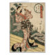 Mitōshi aucun aki aucun tsuki. Lune d'automne du salon principal (Mitoshi). Kikukawa, Eizan. De la série : Huit vues des activités de maison verte. La copie montre une femme, portrait intégral, se tenant sur un passage couvert en bois, faisant face juste avec les deux mains sur son front, regardant probablement la lune. De la Bibliothèque du Congrès la collection