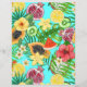 Mélange de motif médiatique peint à la main avec divers fruits tropicaux, fleurs et feuilles