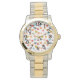 Dit vrouwenhorloge heeft een Boho-design van bloemen in gemengde kleuren, verspreid over het ontwerp.