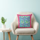 Een zeer Pillow of Cushion met een roomachtig wit Mock Oranje en helder roze Weigelia met een brede, heldere roze rand, van een handbeschilderd ontwerp van de waterverf door Judy Adamson.