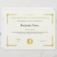 Modèle de certificat d'appréciation d'or