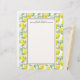 Papeterie à en-tête conçue avec des citrons jaunes et des feuilles vertes, dans un motif répétitif. Une trame blanche est superposée pour une écriture lisible. Personnalisez avec un nom et une adresse ou d'autres textes.