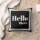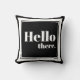 Moderne gooi kussen in zwart-wit met een dik wit lijst en de zin "Hallo daar".
