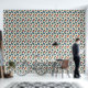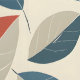 Dit kunstwerk heeft een eenvoudig maar elegant patroon van gestileerde bladeren, gerangschikt in een harmonieus en herhalend ontwerp. De bladeren zijn weergegeven in een gedempt kleurenpalet van blauwgroen, beige en terracotta, tegen een achtergrond van zacht crème. Elk blad wordt gedefinieerd door schone, gladde lijnen met subtiele aderdetails, waardoor een moderne en minimalistische esthetiek wordt gecreëerd. De afwisselende kleuren en oriëntatie van de bladeren voegen visuele interesse en balans toe aan de compositie, wat resulteert in een verfijnd en eigentijds ontwerp.