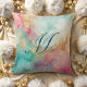 Modern blauw roze gouden waterverf monogram kussen