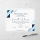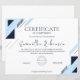 Designed with a contemporary aesthetic, this certificate features a stylish geometric pattern in navy blue and light blue, perfect for a professional corporate setting, school, or organization. The clean white background ensures the text is legible and elegant.