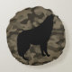 Modern Bruin Camo Zwart Wolf Silhouet Monogram | Rond Kussen