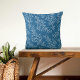 Eenvoudig maar heel mooi gooien kussen met een modern wit vertakkingspatroon op een blauwe achtergrond.