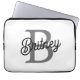 Modern Elegant Monogram Naam Zwart Grijs Script Laptop Sleeve