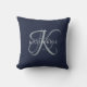 Modern Elegant Monogram Script Navy Blauw Kussen