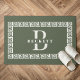 Moderne en stijlvolle stoffige salie groen en ivoor monogram tafel plaats mat met uw aangepaste initiaal en naam binnen een Grieks sleutel grens lijst in een kust mediterrane kleur manier.