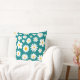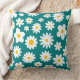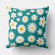 Grillig modern werpkussen met verspreide platte witte madeliefjes met zonnebloem gouden centra over een gewaagde blauwgroen blauwe achtergrond. Contact voor hulp bij het aanpassen of voor personalisatie.