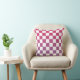Moderne, donkerroze tot lichte paarse gradiënt en wit ingecheckt patroon voegt een kleurrijk accent toe aan uw decor. De gekleurde vierkantjes veranderen geleidelijk van framboze roze naar paars naast de witte vierkantjes. Klik op de link Rocklawn Arts om het geometrische ombré-ontwerp op andere items te zien. © Claire E. Skinner, alle rechten voorbehouden.