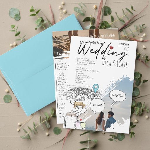 Modern Illustrated Love Story Save the Date Kaart Kondig uw grote dag aan met deze unieke geïllustreerde save the date, ontworpen om te koppelen aan onze Modern Love Story Timeline Wedding Invitation. Een schoon minimalistisch ontwerp met charmante illustraties maakt dit perfect voor koppels die een gerechtsgebouw, stadhuis of intieme moderne bruiloft plannen. Personaliseer met uw namen, trouwdatum en locatie. Ontworpen voor koppels die iets fris, leuk en memorabel willen - een moderne kijk op klassieke romance. Coördineert met de volledige suite van Modern Love Story Wedding Stationery inclusief uitnodigingen, RSVP-kaarten en details van de trouwdag.