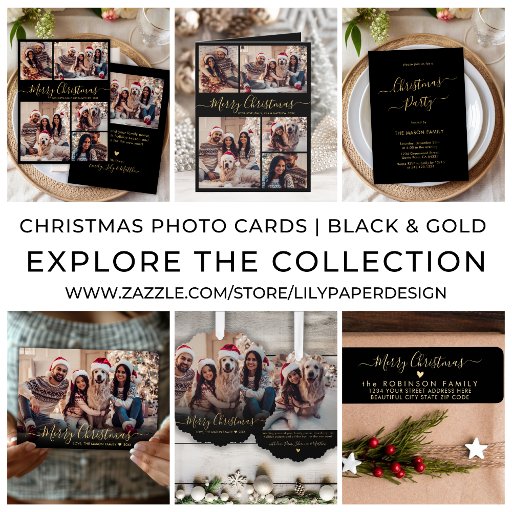 Best Selling Black Gold Christmas Collage CardsOntworpen door Lily LP