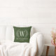 Een modern monogram groen werpkussen met laurierbladeren. Voegt een elegante touch toe aan uw interieur. Personaliseer het met uw Initiaal, naam en trouwdatum. Ontworpen voor u door BlackBerry Boulevard.