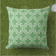 Stijlvolle kussen hebben een modern decoratief Marokkaans quatrefoliepatroon in wit. Pas de groene achtergrond aan om met uw openluchtdecor te coördineren.
