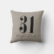 Rustic burlap achtergrond met modern stijl 31 en het manuscript van Oktober. Het ontwerp is voorzien van een spinnspinnen dat van de 3 wordt afgesponnen. Dit ontwerp is eenvoudig en gaat met een modern Halloween decor.