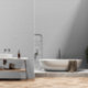 A modern grey wallpaper with a linen look texture for a home office.