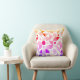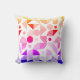 Dit moderne kussen heeft een kleurrijk naadloos geometrisch patroon met lijnen en vormen in geel, rood, roze, paarse en blauwe verloop op een witte achtergrond.