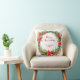 Dit eenvoudige en stijlvolle vakantiekussen is voorzien van een prachtige waterverf krans met groene bladeren en rode hulstbessen, en een rode moderne scripttypografie met de tekst "Merry Christmas" op een witte achtergrond.