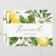 Dit moderne bord voor citroentuin is perfect voor een lente- of zomerbruiloft. Het rustige mediterrane ontwerp is voorzien van heldere en mooie waterverf citroenen met witte bloemen uit de bohemen en elegante groene bladeren. Gebruik deze kaarten om stoelen of tafels te reserveren bij uw trouwceremonie, ontvangst of om het even welke gebeurtenis.