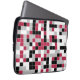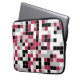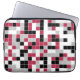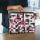 Deze kleurrijke laptophoes is voorzien van een meerkleurig geometrisch patroon in Viva Magenta, zwart, grijs en wit. De vierkanten zijn gekleurd in willekeurige volgorde en u kunt de kleuren bewerken in het gereedschap Design.