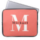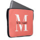Modern minimaal koraal Initiaal + Naam Monogram Laptop Sleeve