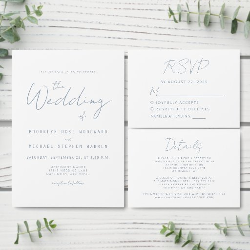 Modern Minimal Dusty Blue Script Wedding SuiteOntworpen door Akhates Designs