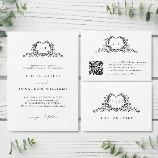 Minimalist Monogram Calligraphy Crest WeddingOntworpen door Bliss Design Studio