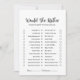 Modern Minimalist would she rather Game Card. Designed with a clean layout and elegant typography, this game is perfect for the modern bride who loves simple yet stylish details.