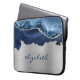 Modern Navy Blue Silver Agate Metallic Laptop Sleeve