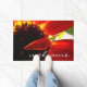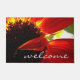 Modern Red Gerber Daisy Photo Welcome Script Deurmat