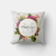 Aangepaste kussen met een ontwerp. Een bloem van vele verschillende soorten bloemen in rode, roze en witte kleuren, en veel bladgroen. Een lijst dat over de bovenkant is gelaagd met een faux-goudfolie grens. Classy en elegant design. Een gebroken witte marmer patroonachtergrond.
