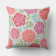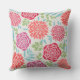 Stijlvol vierkant kussen in de buitenkant werpen een floraal gepatterd ontwerp met levendige zomerpony's, dahlia en duitse daisy bloemen in tinten koraal, roze, fuchsia en rood met groen en zacht wit. Het ontwerp van de achtergrond heeft een subtiele linnen getextureerde blik.
