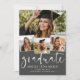Une invitation moderne de graduation avec le mot "diplômé" sur le devant dans la calligraphie stylisée, plus 4 de vos photos senior préférées. Ajoutez vos propres détails de célébration à l'arrière avec une photo supplémentaire. C'est la version chic simple gris fusain et ivoire.