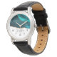 Een horloge met een abstracte stijl. Illustratie van blauwgroen agaatsteen met lagen van verschillende tinten. Een faux gouden glitter lint loopt tussen de lagen van kleur. Modern stijlvol design.