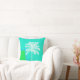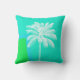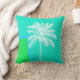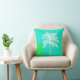 Stijlvolle zeeen huisje thema accent gooien kussen gedaan in een aqua, blauw, en groene moderne achtergrond met afbeeldingen van een witte palmboom illustratie. Mooie manier om kleur, interesse en stijl toe te voegen aan elke kamer.