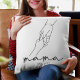 Stomme gooi kussen voor moeders met een lijntekening van een kind met hun moeders hand, de titel 'MAMA' in een modern script lettertype, en het jaar dat ze ouder werd.