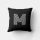 Dit moderne en stijlvolle kussen is voorzien van uw monogram in een trendy, grijs gestreept, disco-stijl typografie initiaal op een donkere, zwarte achtergrond. Een mooie en elegante look waar iedereen dol op zou zijn.