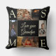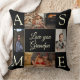 Modern zwart minimalistisch 4 fotocollage sjabloon gepersonaliseerd kussen voor grootouders. Voeg je favoriete vier kleinkinderen foto's met bewerkbare tekst "Love You (Grandma/Grandpa/Dad/Mom/Nanny/Granny/Grampy/Other)" toe in modern kalligrafie script en 4 naam initiaal monogrammen. Als u hulp nodig hebt bij de aanpassing van dit ontwerp, kunt u mij een bericht sturen. Foto van Christelijk Bowen op Unsplash