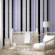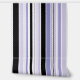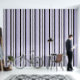 Deze peel en stick wallpaper heeft een zwart, wit en lila paarse gearceerde strepenpatroon.