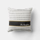 Een modern zwart-wit gestreept kussen met een vleugje goud. Personaliseer het met jouw naam. Past bij de minimalistische Japanse decoratiestijl. Ontworpen voor u door Blackberry Boulevard.