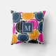 Een prachtig roze, geel en blauwgroen abstract cirkelontwerp met gecentreerd monogram op een blauwgroen blauw vierkant. Een fantastisch accentontwerp dat een geweldige aanvulling op elke kamer zou zijn.