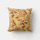 Gooi kussen in een modern abstract patroon van middeleeuwen en stippen, met de blik van confetti in de lucht, in tinten chocoladebruin, roest en zacht gele zeemlepel, geaccentueerd met wit, tegen een diepe mosterdgoudachtergrond