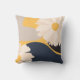 Het moderne abstracte bloemontwerp is voorzien van twee grote witte maisachtige bloemen met een jaloze, grijze en zwarte abstracte vorm op gele achtergrond.