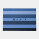 Moderne Blauwe Strepen Patroon Aangepaste Naam Deurmat.