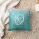 Moderne Blauwgroen zilveren glitter Drip monogram Kussen
