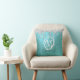 Blauwgroen turquoise werpkussen met faux geborstelde metallic achtergrond en zilveren glitter druppelrand gepersonaliseerd met een wit decoratief monogram of initiaal en handgeschreven scriptnaam in blauw groen. Ideaal cadeau voor degene die houdt van een beetje glinstering of het inrichten van een kamer in een trendy leuke stijl. Neem contact op met de ontwerper via Zazzle Chat of makeitaboutyoustore@gmail.com als u dit ontwerp wilt wijzigen, op een ander product of als u items wilt coördineren.