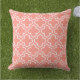 Stijlvolle kussen hebben een modern decoratief Marokkaans quatrefoliepatroon in wit. Pas het koraal oranje/roze achtergrond aan om met uw openluchtdecor te coördineren.